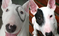牛头梗的耳朵小且薄,位置很靠近;眼睛下陷,颜色深闪烁着敏锐的光芒,眼睛小呈三角形;鼻镜为黑色,鼻孔大且鼻尖向下。