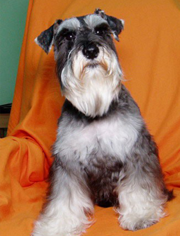 颜色:获得承认的颜色为椒盐色、黑银色和纯黑色。不论什么颜色,皮肤的色素沉积都必须很均匀,就是说,皮肤任何位置出现白色或粉色斑块是不允许的。
