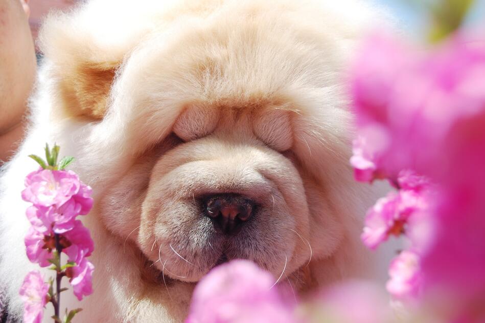 桃花树下奔跑的帅狗狗