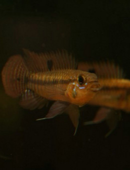 小丑短鲷通常和七彩短鲷及酋长短鲷一起混合进口。体表有一条黑色纵纹,鳃盖会分布着红、蓝色的小斑纹,背鳍上有 6 ~ 7 条硬棘,尾鳍呈细网状,体型优美,但进口数量稀少。性情温和,喜好弱酸性的软水,肉食性,偏好各种小型活饵。饲养及繁殖都不难,喜好弱酸之软水。